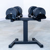 The minimalist European designed Training Camp Eurobells Adjustable Dumbbell Set replaces 16 pairs of individual dumbbells (10-80lbs set) saving valuable space.