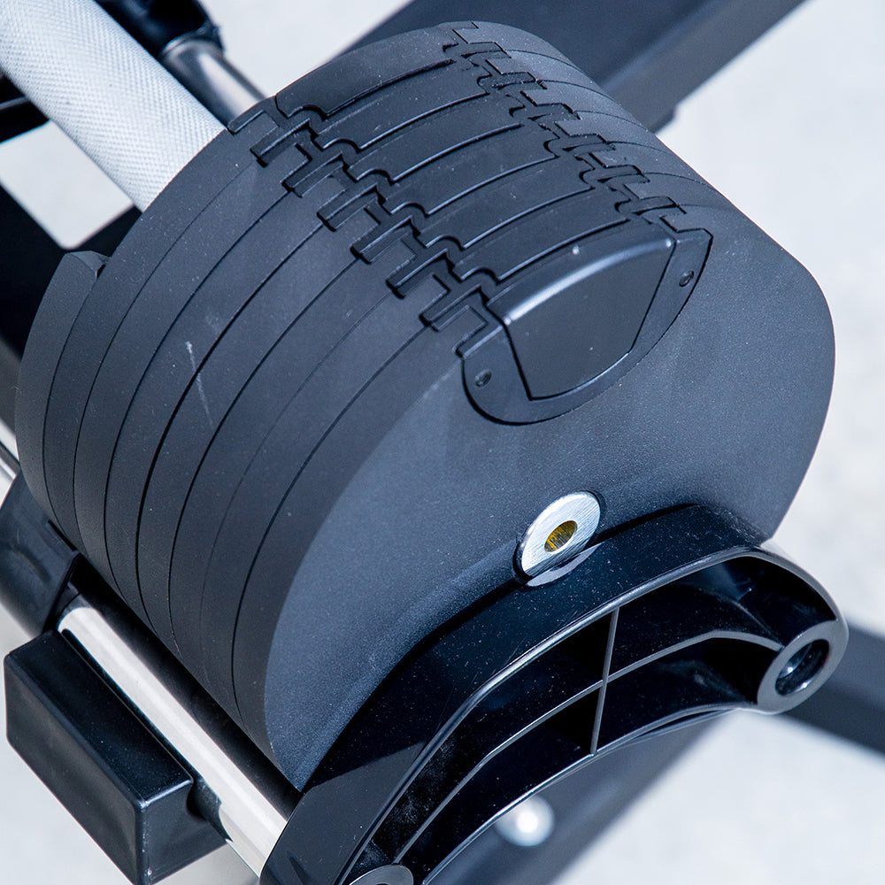 The easily adjustable weight system is a simple yet effective locking mechanism that allows you to change how heavy your weights are without ever having to let go of the handle. Just a couple twists of the wrist is all you need to pump up the intensity. The simple-to-adjust weight system makes it easier to get in the zone and stay in the zone so you can focus on getting fit and less on managing your annoying, bulky traditional weights.